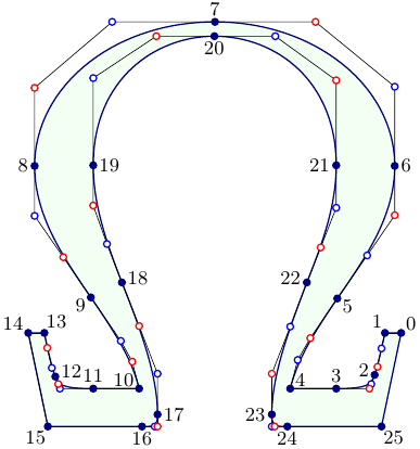 Pour définir des courbes de Béziers avec un nombre de points plus important, on utilise des polynômes de Bernstein de degré supérieur.