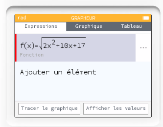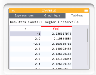 On affiche ensuite le tableau associée à cette fonction.