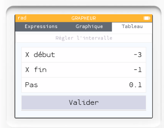 On choisit "Régler l'intervalle" pour chercher la plus petite des images f(x)